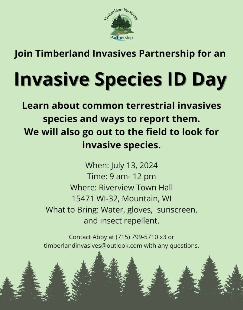 Timberland Invasives Partnership is hosting an Invasive Species ID Day on Saturday, July 13th in Oconto County, Wisconsin! The morning will begin with learning invasive species identification and reporting techniques. Following the information session, we will head out to a few sites to look for invasive species and practice reporting them. Everyone is welcome!