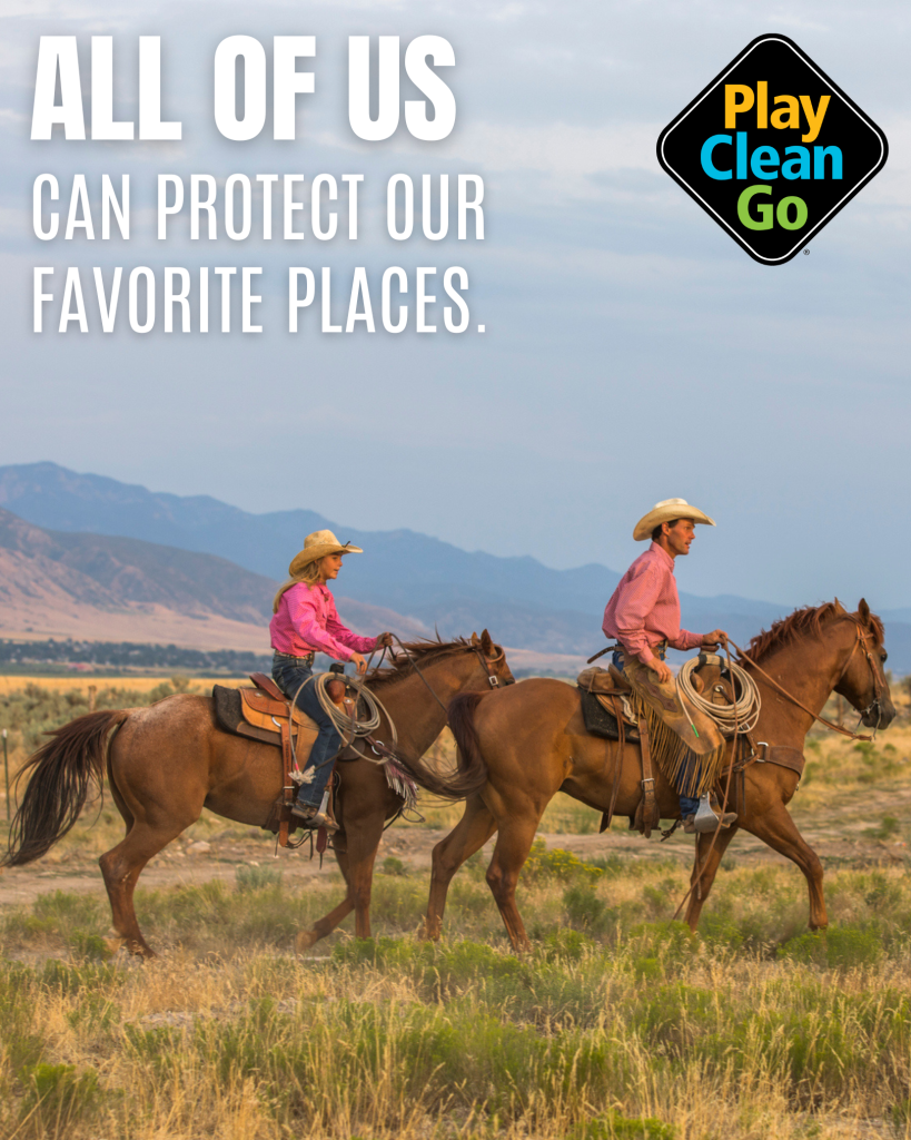 Heading out on horseback during PlayCleanGo Awareness Week? Be sure to pack certified weed-free hay and clean your boots and gear before hitting the trail. All of us can protect our favorite places—one ride at a time.