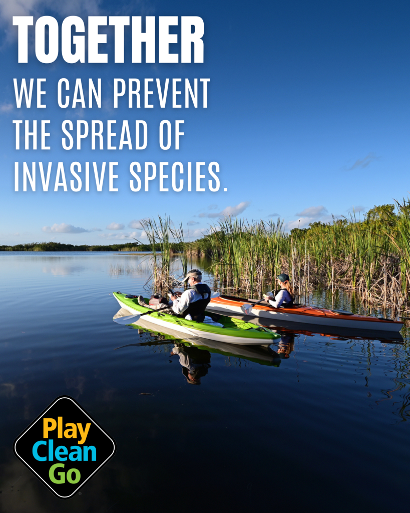 Celebrate PlayCleanGo Awareness Week by keeping invasive species out of the water! After each trip, Clean, Drain, and Dry your kayak, paddle, and gear. These simple steps protect lakes and rivers—together we can prevent the spread of invasive species.